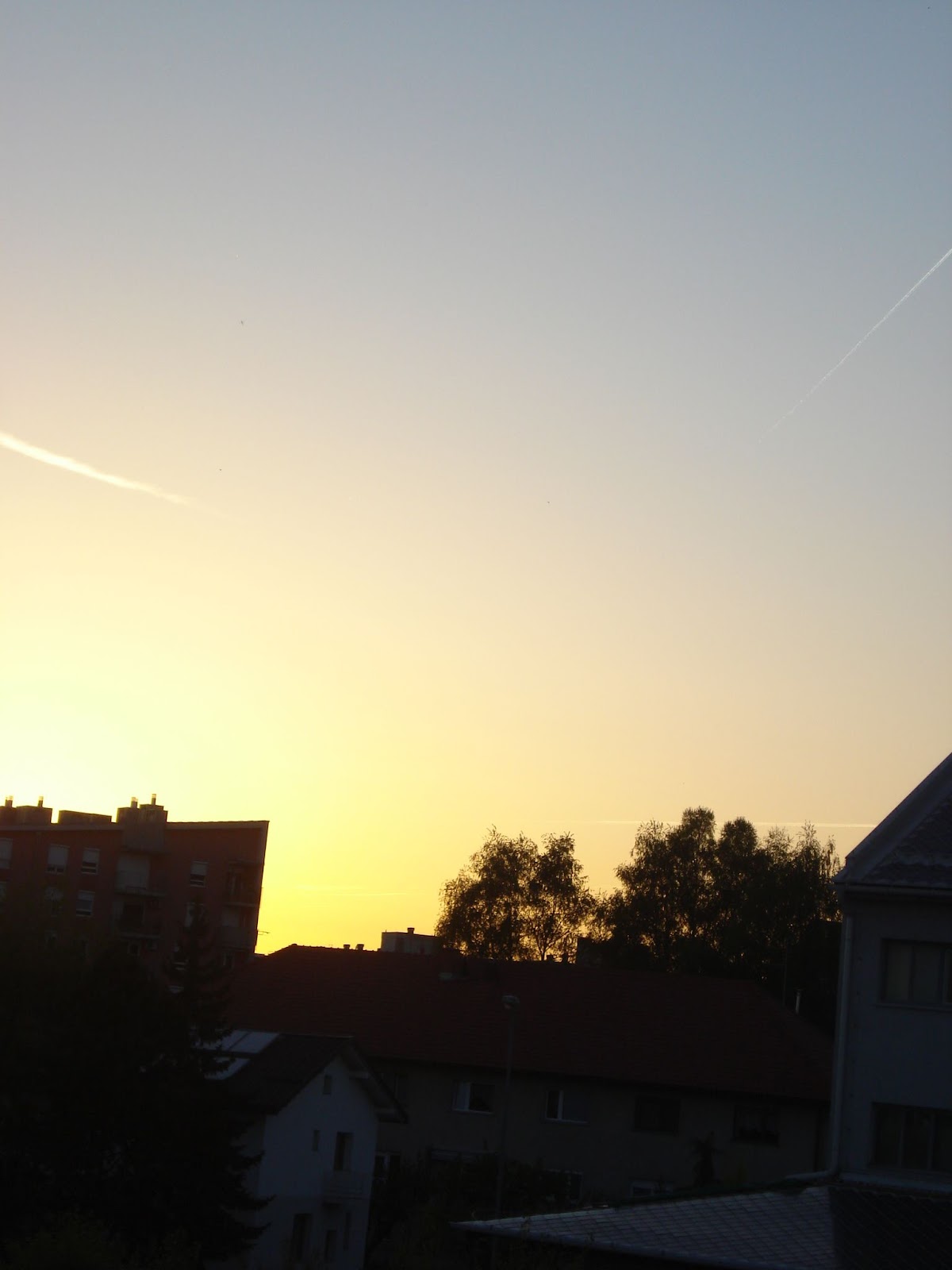 Domžale. Lep sončen dan. Brez oblačka. Le par letal na nebu. In Klijči.