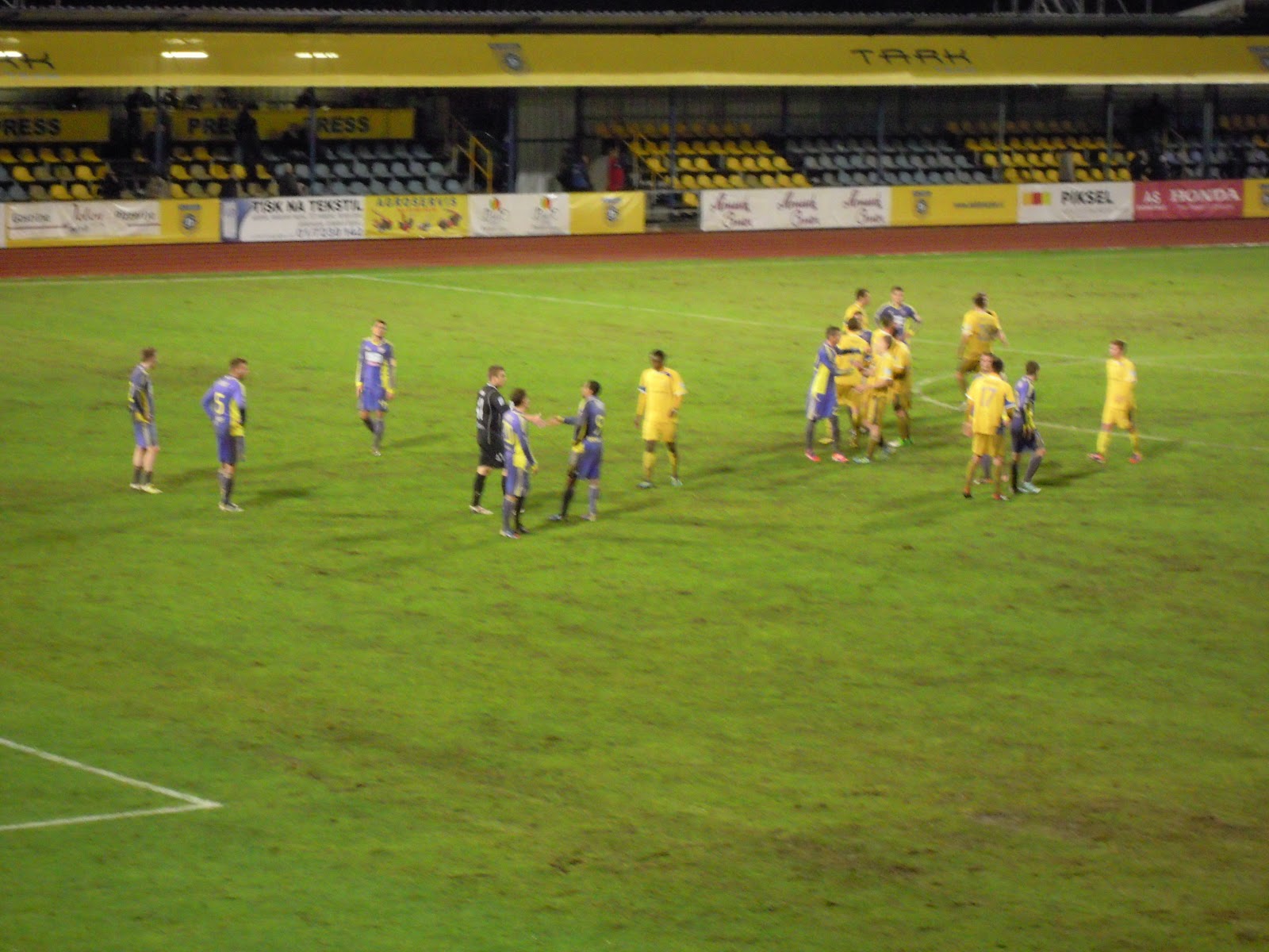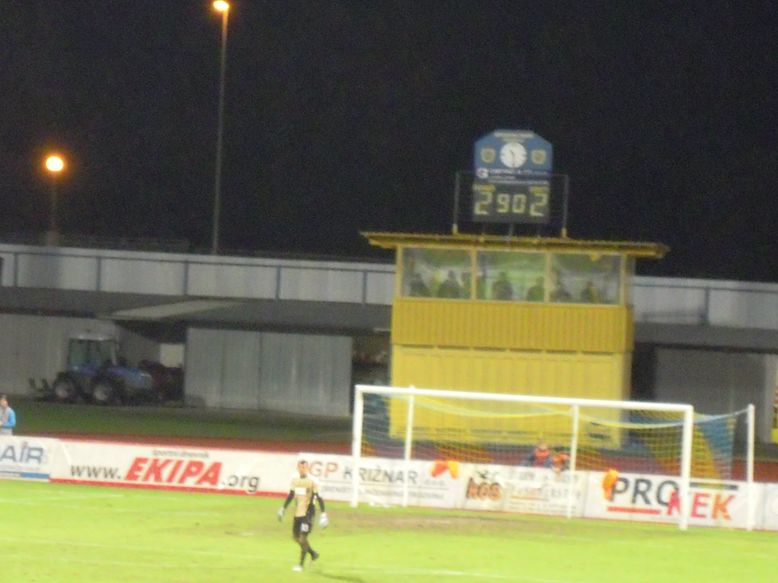 Mojca v eno, mi trije pa v drugo smer. In seveda je lilo, kot da je sodni dan. In pridemo gor. Vau, spet stari dobri plac. Pohvale navijačem. Od prvega do zadnjega vsem. Krasno je bilo videt na sredo, v tako gnilem vremenu in še ne najbližjem gostovanju. Ta nič kaj prisrčen sektor je bil praktično poln. Bravo mi!