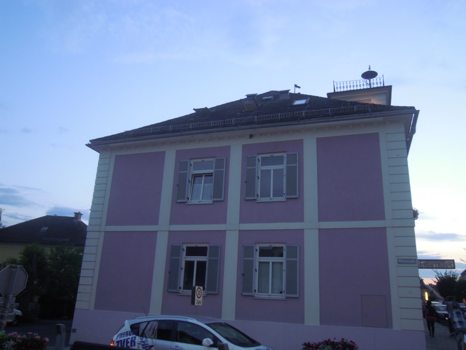 Vseeno prijetno druženenje, kjer vendarle nismo bili mokri, se je končalo pred bajto za poročanje, kjer sem naletela še na naše glavne navijače, ki so me opomnili kje stojim…oh, pa tak zanimi barvi hiš sta bili…