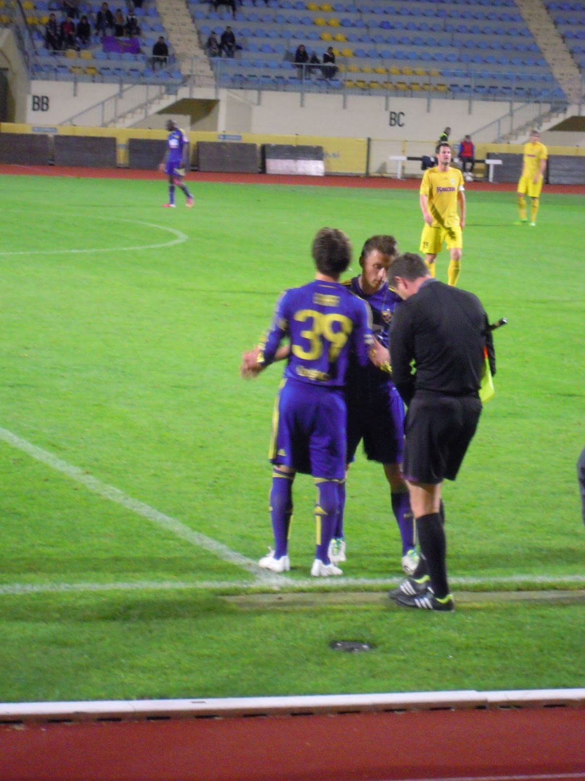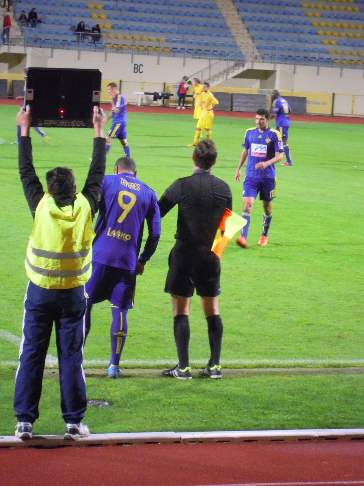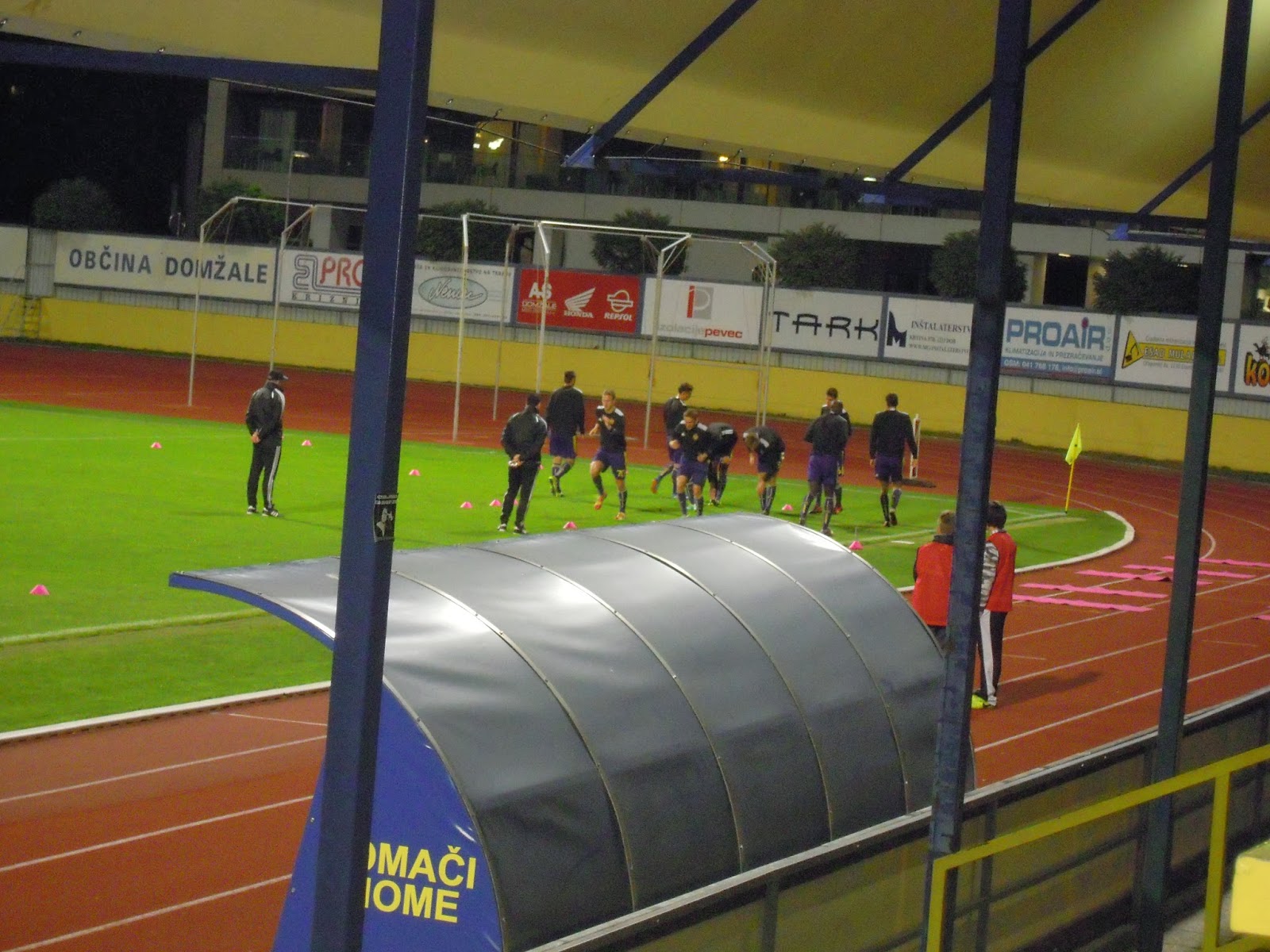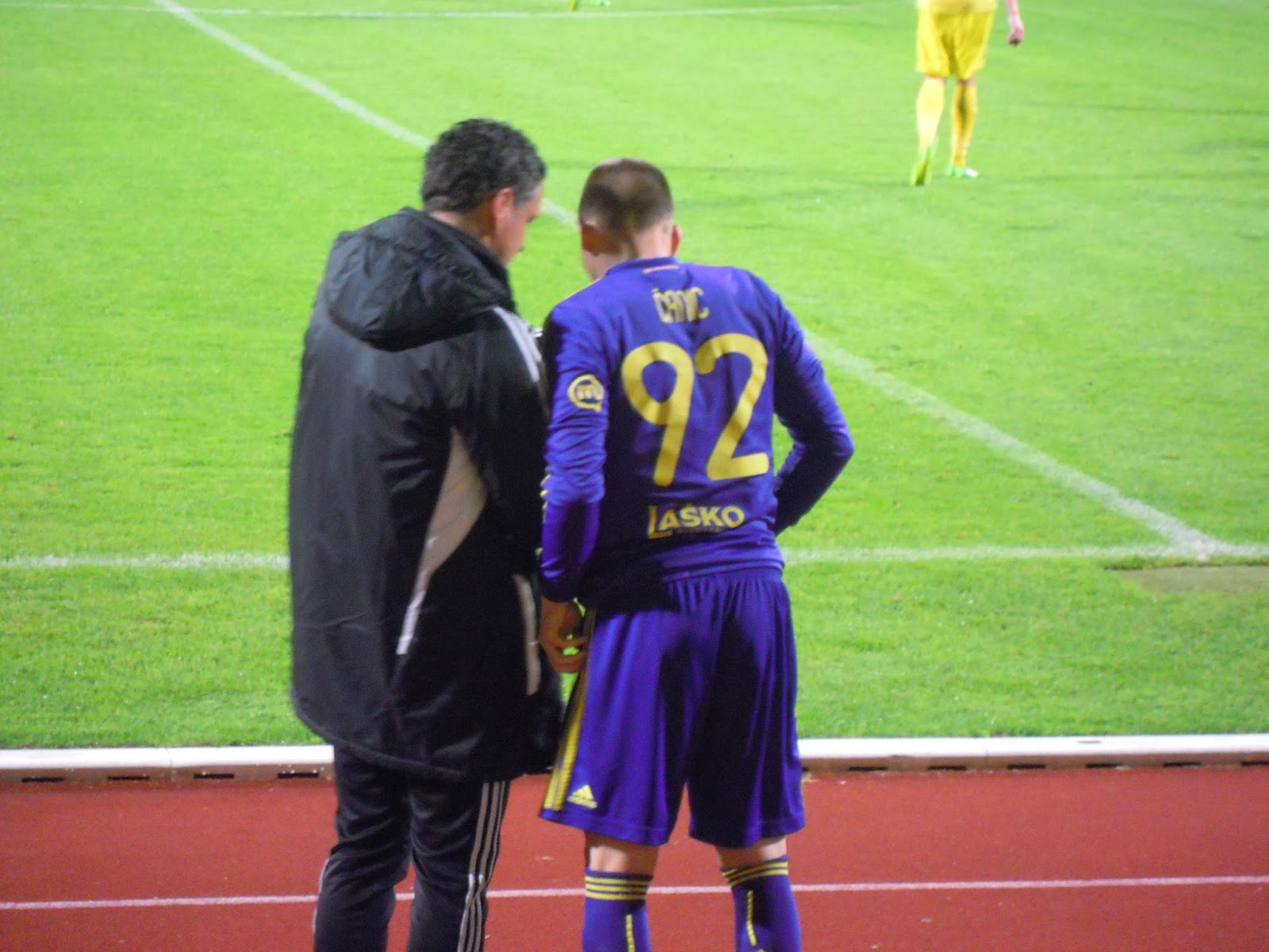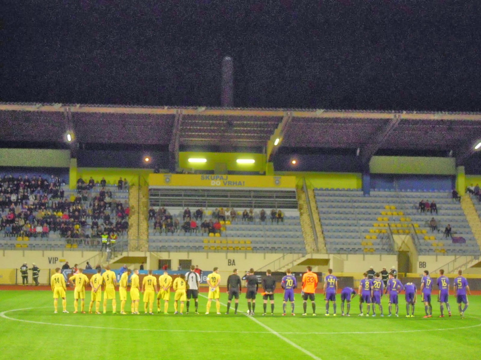Po tekmi sem počakala še Mateja, da je opravil novinarsko delo. Reflektorji so se ugasnili, še traktor je mimo prišo…malo sem opazovala okolico…
