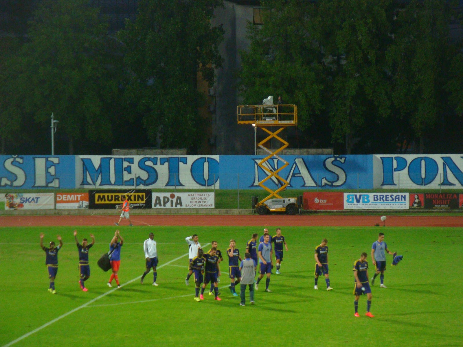 Po takem dolgem dnevu, ko smo znova obiskali delček Italije, v starem Hitrem Mikiju, ki je zdaj D’obro, na pohanem siru (tako pišem na jedilnem listu), pa standardni krog okoli stadiona, pozdrav prijateljem. Pa gremo na tribuno. Med Goričane tokrat, ki jih je spodaj kar mrgolelo. Ne spomnim se sploh kdaj tak nazadnje. Ne vem če sploh kdaj ob mojem obisku.